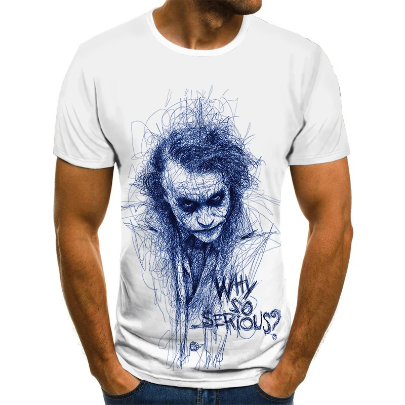 2021 летняя белая мужская футболка с 3D принтом клоуна, повседневна...