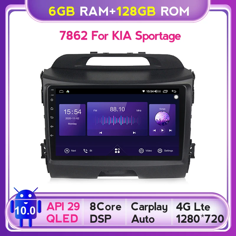 Автомагнитола 2DIN, мультимедийный видеоплеер с QLED-5G, Wi-Fi, GPS-навигацией, RDS, 6 ГБ ОЗУ, 128 Гб ПЗУ, на платформе Android 10 для KIA Sportage 3 2010-2011
