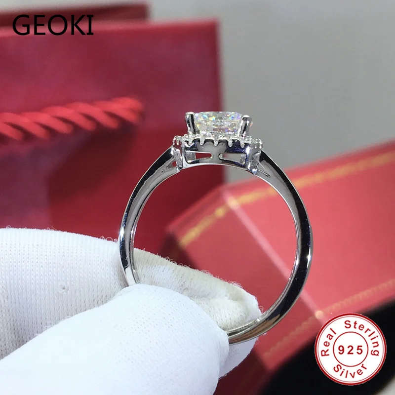 Geoki 925 пробы серебро прошел алмаз Тесты 1 Ct идеальный крой D Цвет VVS1 Муассанит 4 зубчатое кольцо с камнем Роскошные ювелирные изделия
