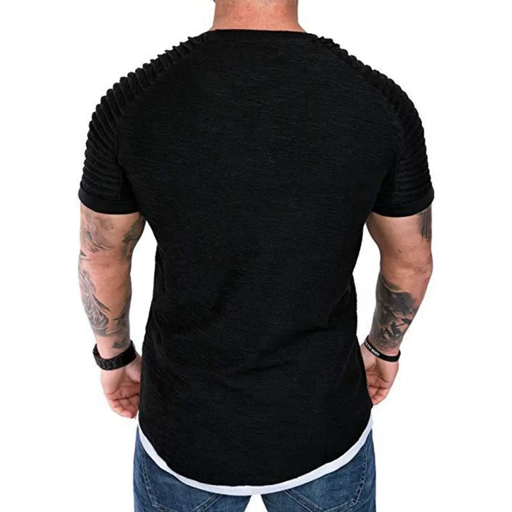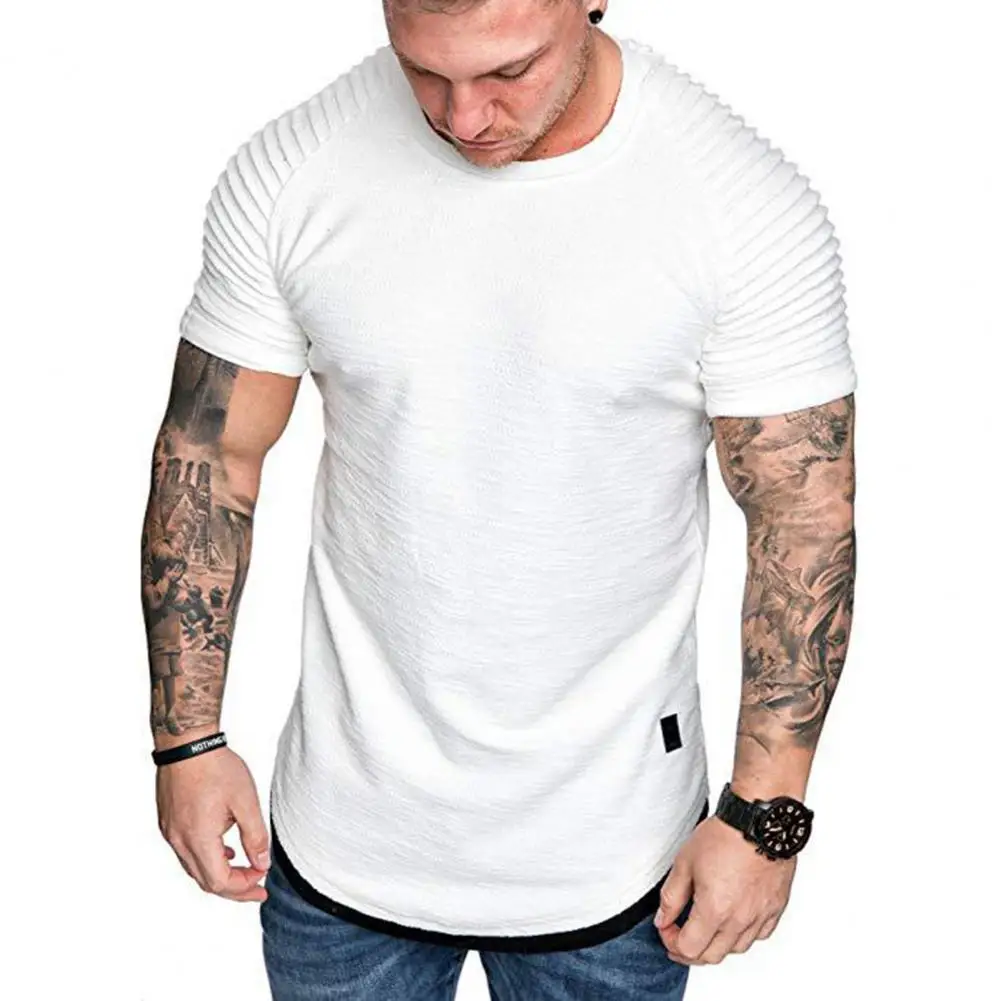 Футболка мужская Плиссированная, облегающий топ с круглым вырезом и коротким рукавом, дышащая однотонная Повседневная Базовая рубашка, уличная одежда, лето