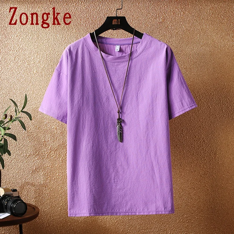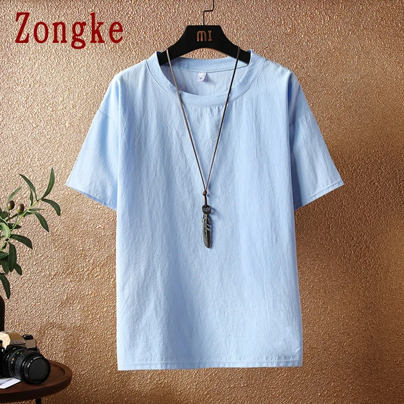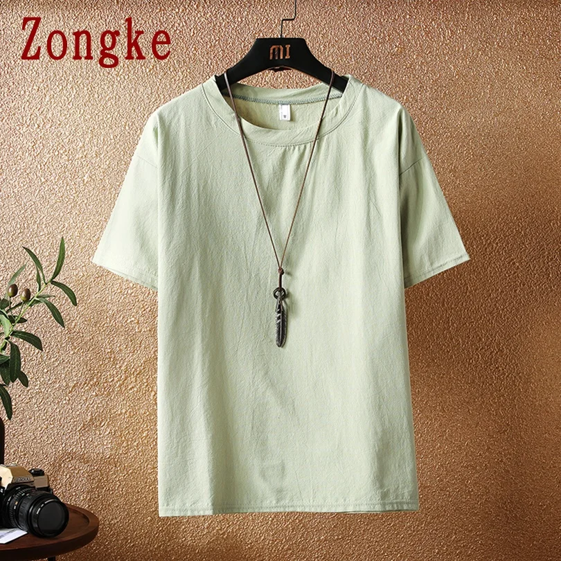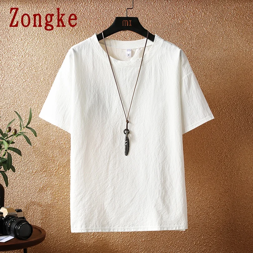 Футболка Zongke мужская из хлопка и льна, Повседневная рубашка в стиле Харадзюку, блузка в стиле хип-хоп, лето 2022