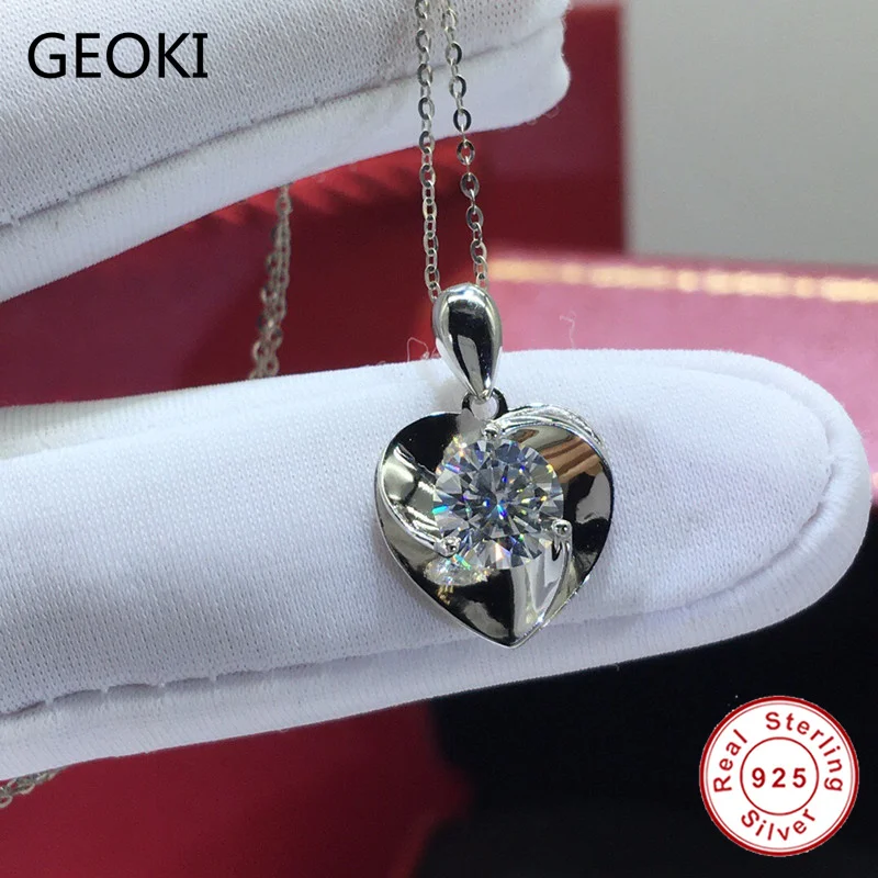 Geoki 925 стерлингового серебра 1 карат идеальный крой прошел Diamond тесты с розами; С сердечками; Муассанит кулон ожерелье Роскошные свадебные цепи подарок