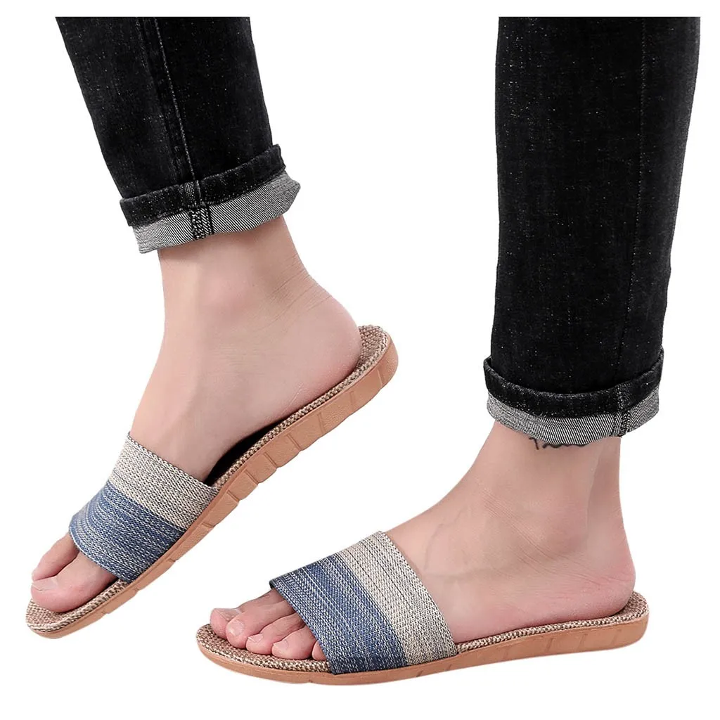 Мужские модные повседневные шлепанцы, шлепанцы в клетку, домашняя обувь на плоской подошве, дышащие льняные тапочки, мужские пляжные сандалии # G30