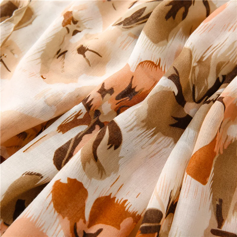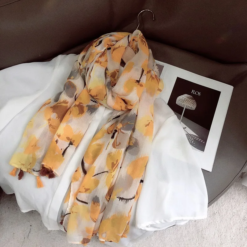 Шарф из хлопка с бахромой и цветочным принтом, весенний, 2021