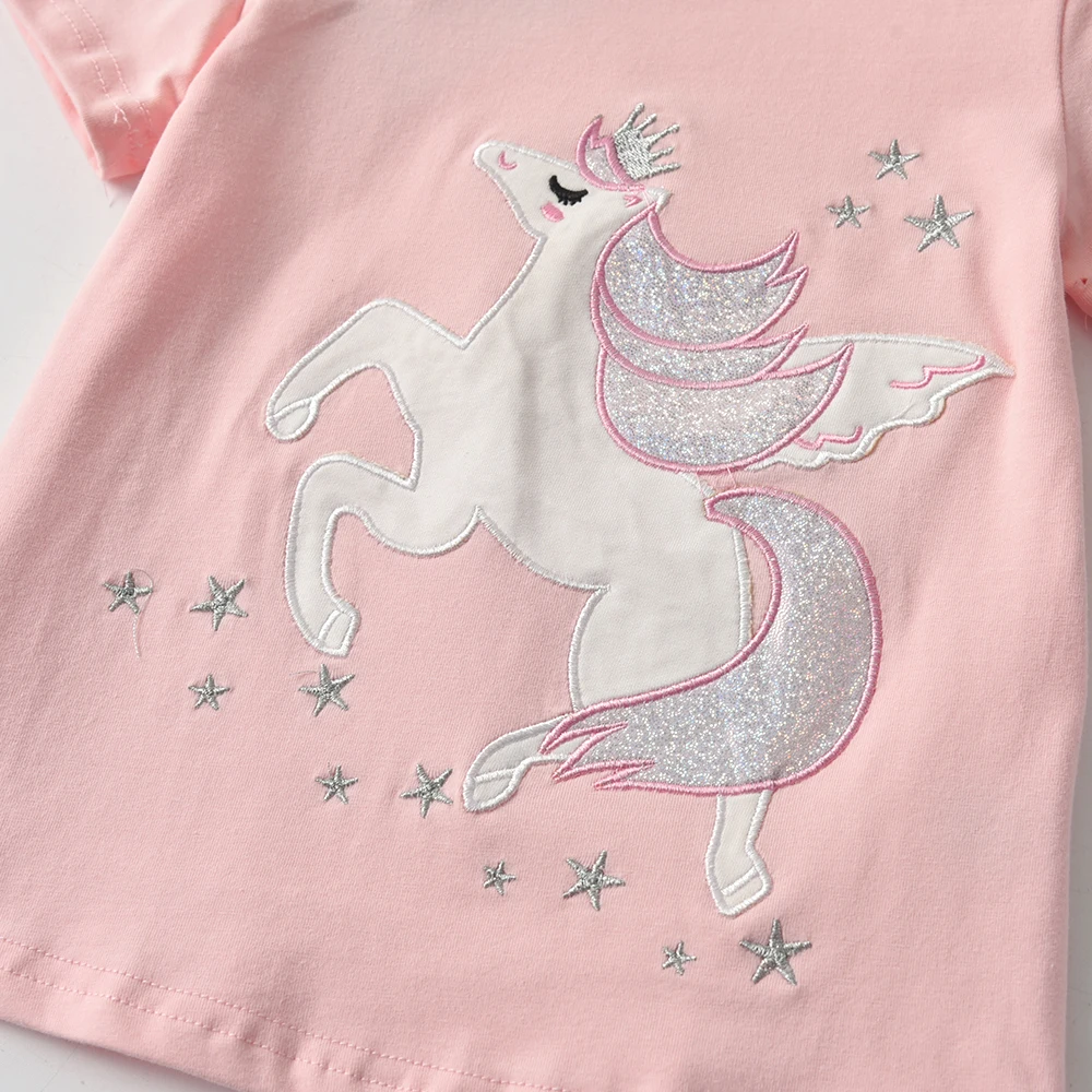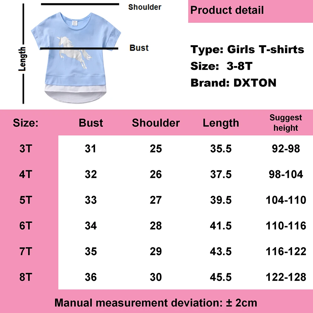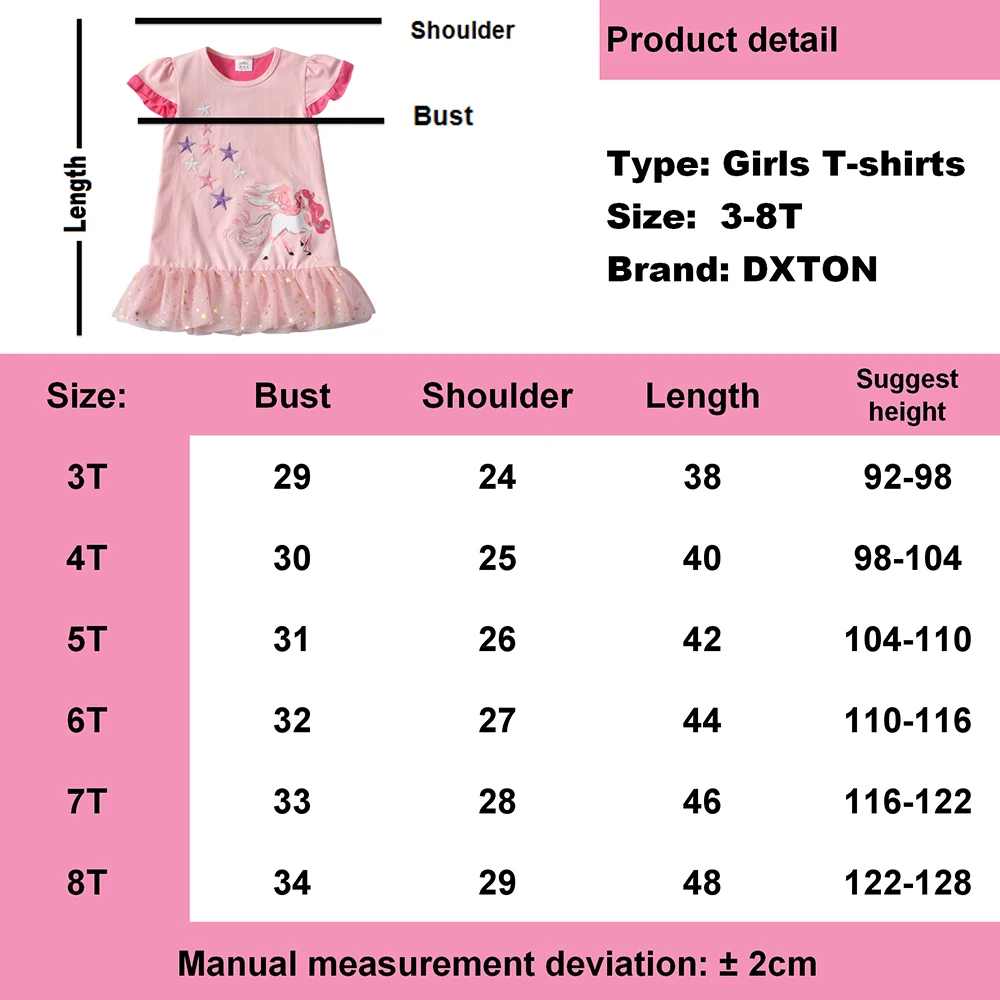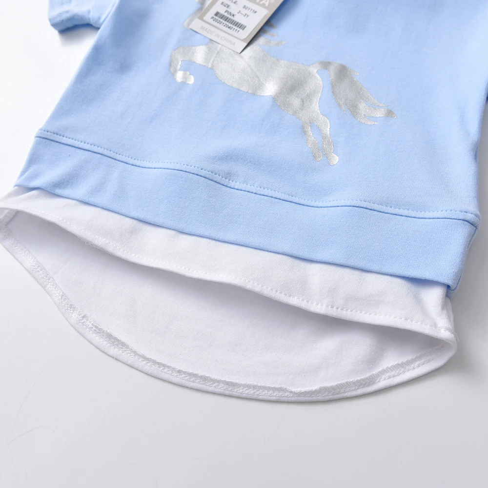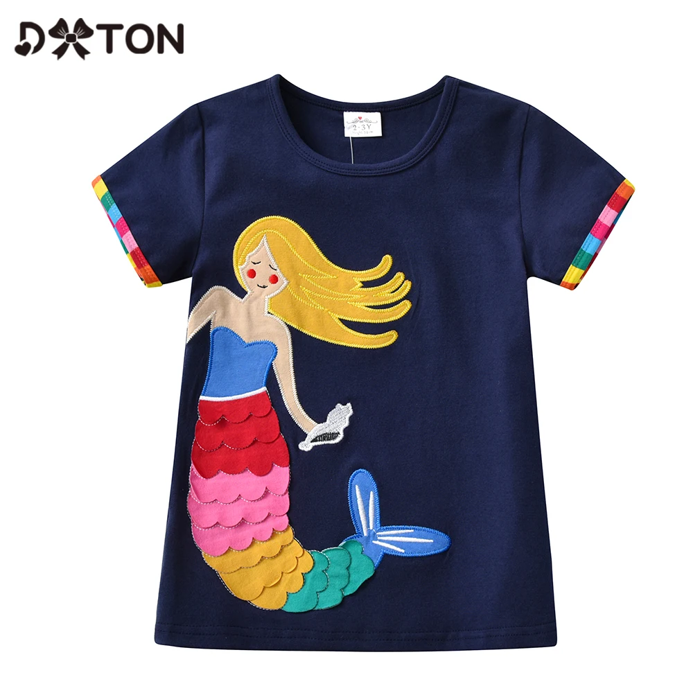Хлопковые футболки для девочек DXTON, детские летние футболки с коротким рукавом и изображением русалки, радужного цвета, топы с единорогом для малышей