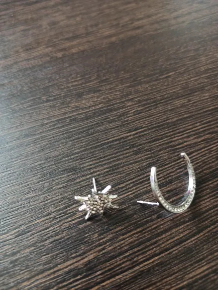 Золото розовое, мне нужно было желтое, отдала сестре, затычки бракованные, дырка в них с одной стороны, не насквозь, их сразу выкинула. Луна в ухе смотрится странно, в общем мне не зашло, но сестра довольна) пришло в спб очень быстро, 12 дней