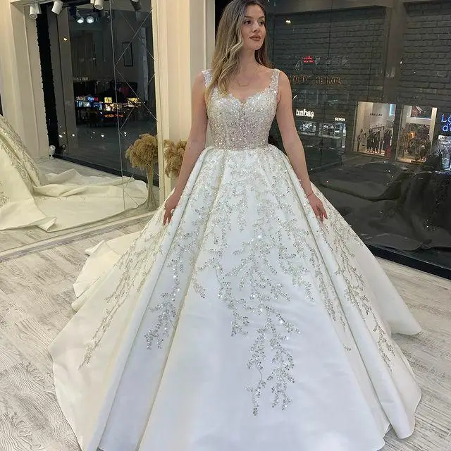 Роскошное Свадебное платье принцессы 2022 романтическое милое платье на бретелях с блестящими блестками женское платье