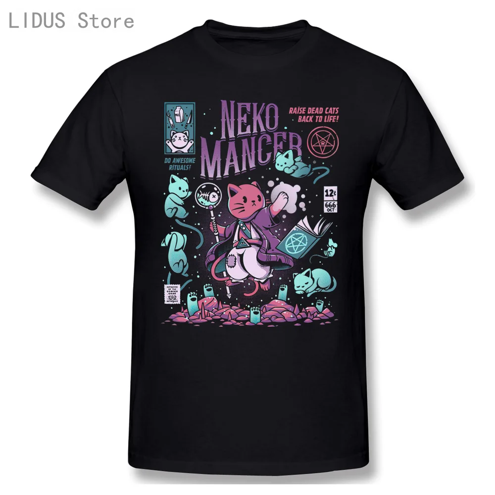 Nekomancer футболка Dead кошки вернуться к жизни Футболка мужская футболка с надписью в стиле аниме, Детская футболка с принтом футболки мужская одежда из хлопка Японии черные Топы Kawaii