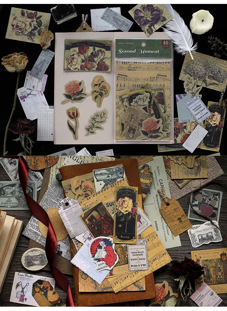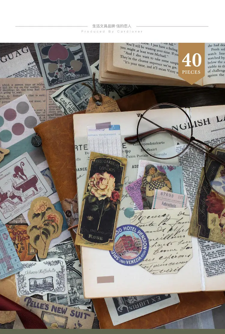 Бумажные стикеры для скрапбукинга, в стиле ретро, в антикварном стиле, 40 шт.