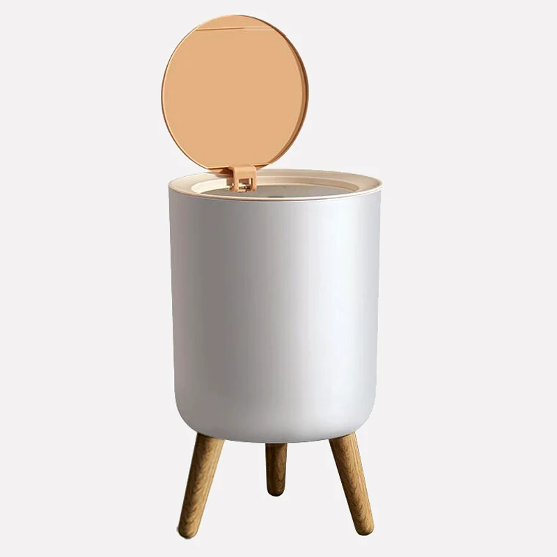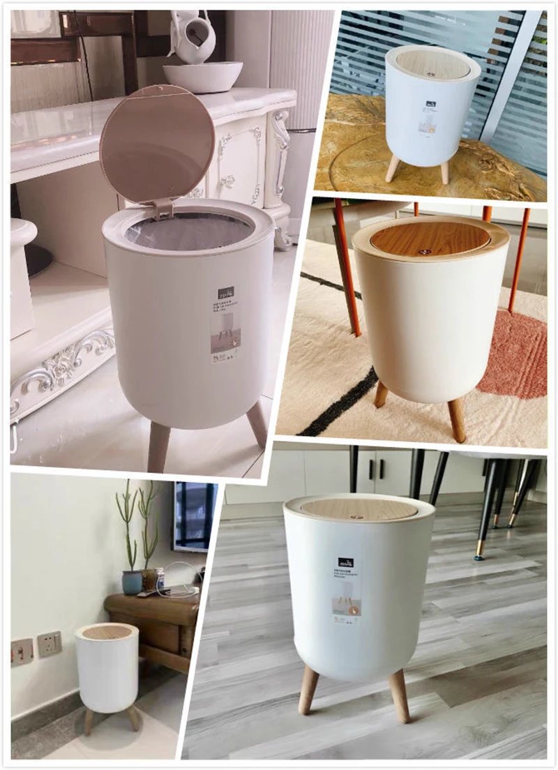 Модный мусорный бак, Высокая ножка, имитация дерева, пластик, Рабочий стол с нажимной крышкой, мусорное ведро для гостиной, туалета, кухни, мусора