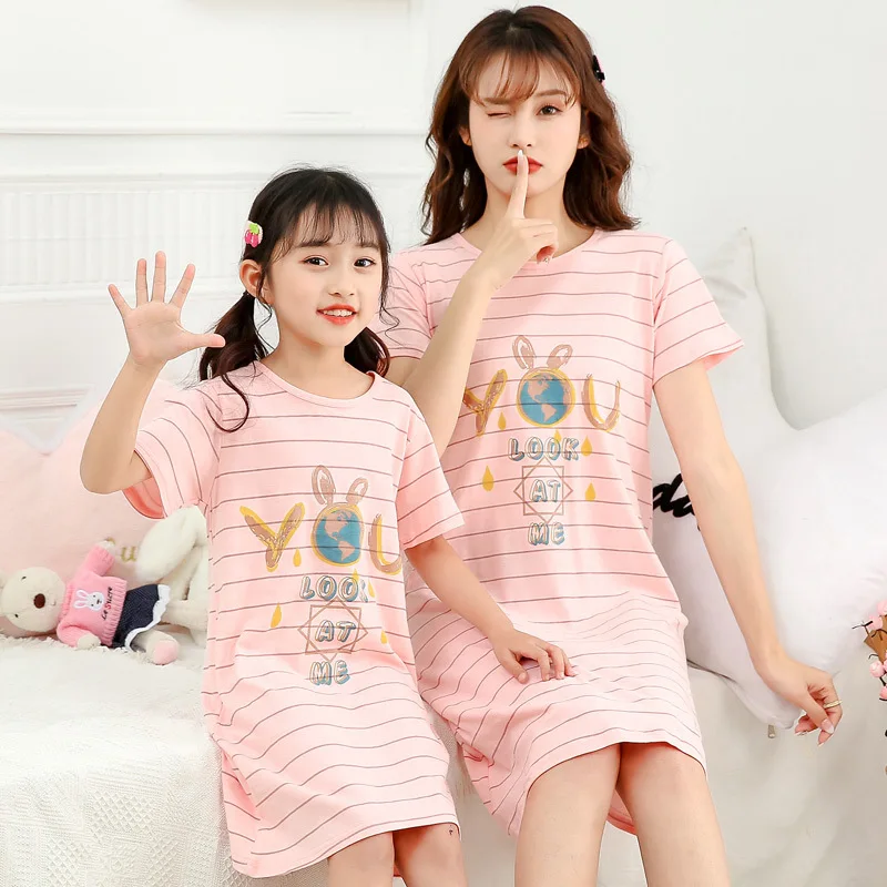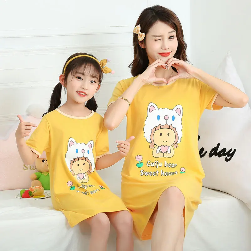 Летнее платье для матери и дочери, пижама с коротким рукавом, 100% ...