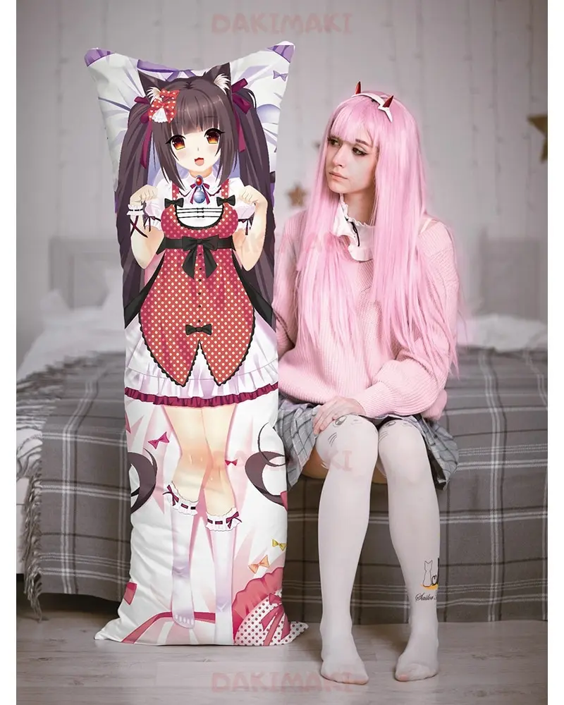 • наволочка + подушка + сумкаВыбрать необходимую комплектацию вы можете в свойстве "Цвет". Описание наволочки. Наволочка для дакимакуры Ванилла | Vanilla и Чокола | Chocola – персонажа аниме-сериала Кошачий рай Некопара | Nekopara размером 150 на 50 см шьется на собственной фабрике в Москве. Ткань: атлас высокой плотности 160 гр/м2, обладает умеренно глянцевым оттенком. Швы прочные с использованием оверлока. По короткой стороне наволочки имеется потайная молния. Двусторонняя печать на наволочке выполняется методом сублимации, что обеспечивает высокую четкость и цветоустойчивость принта. Мы даем гарантию стойкости принта к окрашиванию на 90 циклов стирок. Описание подушки. Информация о подушке для наволочки дакимакуры. Подушка плотно набита холлофайбером - гипоаллергенным наполнителем, сочетающим мягкость и упругость. Вес составляет около 2,7 кг. Если подушка покажется слишком объемной, в напернике предусмотрен доступ к наполнителю через потайную молнию, которая позволяет легко регулировать плотность подушки. Поставляются подушки для дакимакуры в вакуумной упаковке.