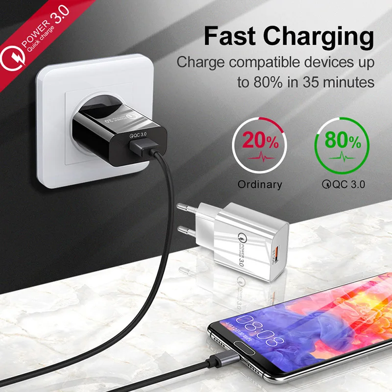 Зарядное устройство для путешествий, 18 Вт, кабель Micro Usb Type-c, быстрая зарядка 3,0 Для Xiaomi 11 10, Redmi Note 9, Huawei P30, P40, адаптер зарядного устройства для телефона