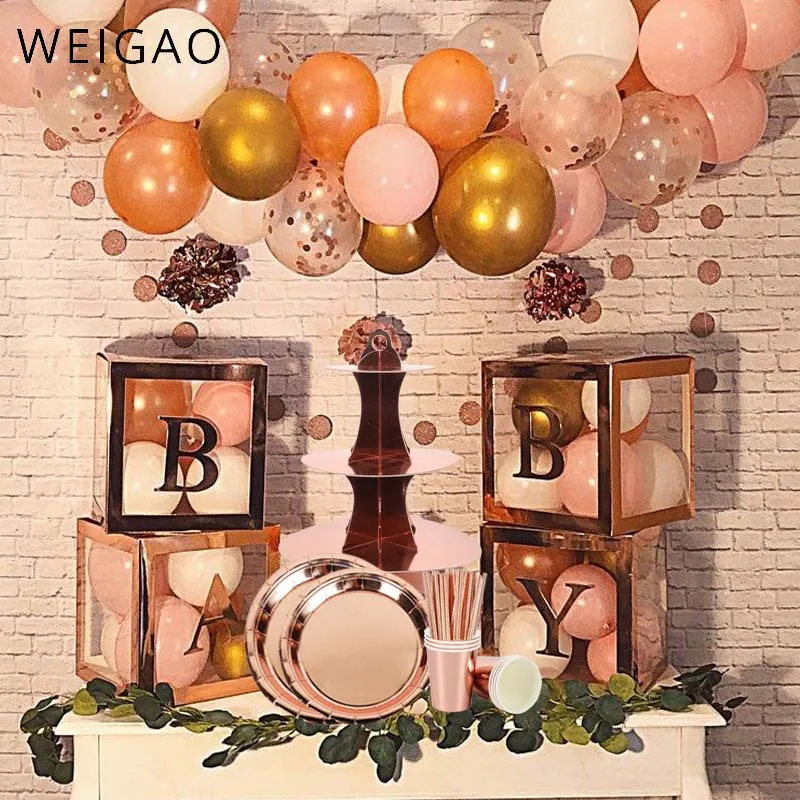 Baby Shower коробка шар из розового золота A-Z письмо прозрачная ко...