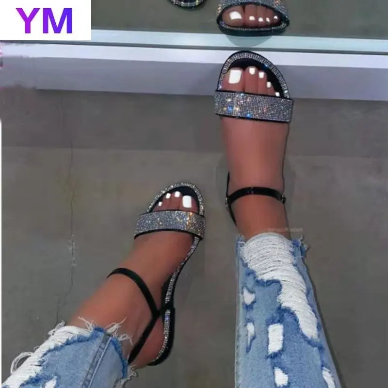 Сандалии женские с кристаллами, плоская подошва, Нескользящие, гладиаторы, пляжная обувь, лето