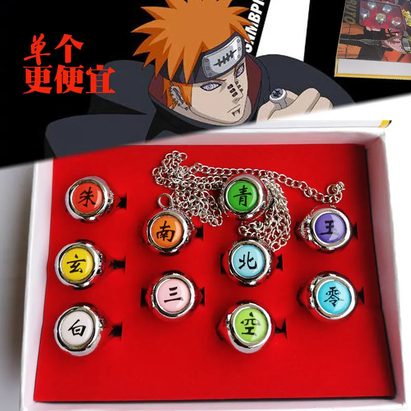 10 шт.компл. аниме Кольца Shippuuden ювелирные изделия косплей костюм кольца ниндзя модный стол Akatsuki металлическое кольцо набор аксессуаров