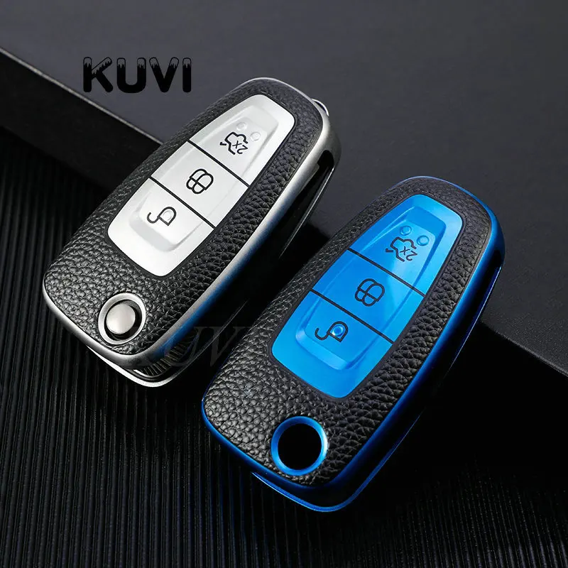 Чехол для автомобильного ключа, из ТПУ, кожаный, для Ford Ranger C-Max S-Max, Focus, Galaxy Mondeo, Transit, Tourneo