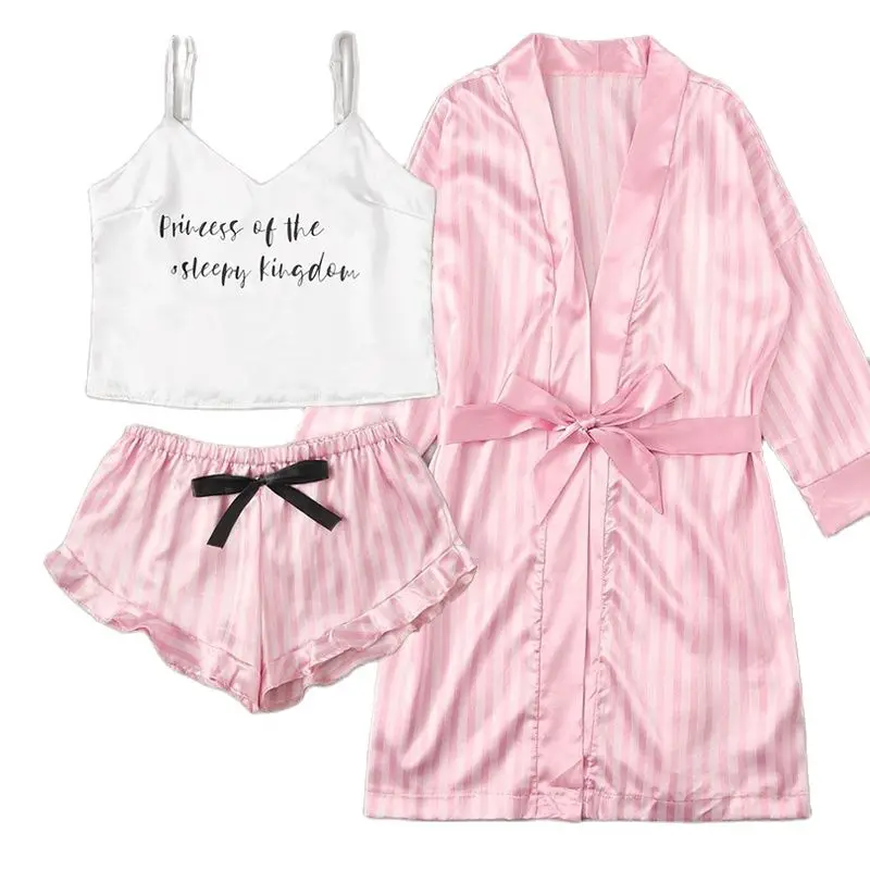 Новый женский пижамный комплект из 3 предметов, пижамные комплекты из искусственного шелка, пижамные комплекты, элегантная пикантная кружевная Модная Повседневная Домашняя одежда, ночное белье