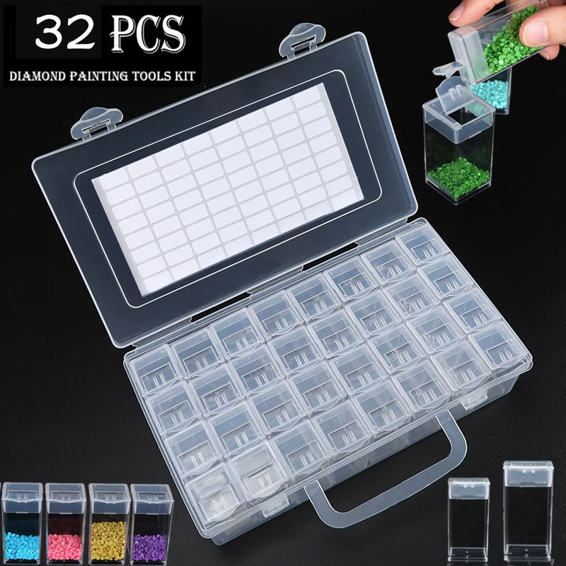 Ящик для хранения алмазной живописи с 325664 ячейками 5D, пластиковые алмазные инструменты, аксессуары для вышивки, контейнеры для хранения бусин Стразы