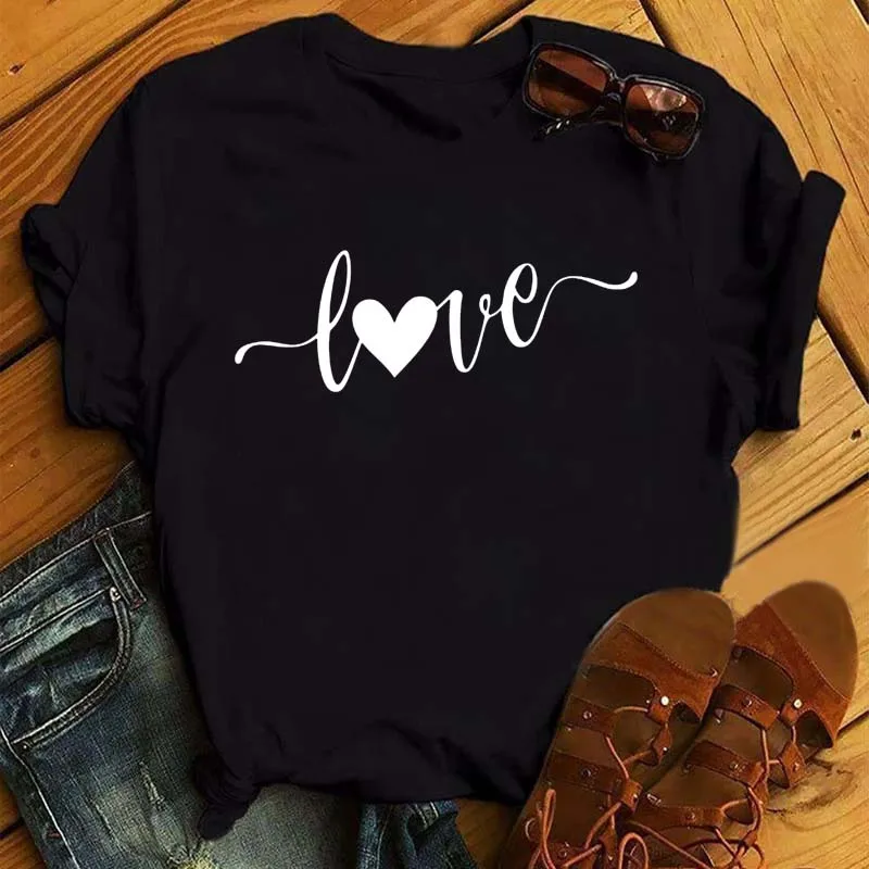 Футболка Maycaur женская повседневная с забавным сердечком, повседневный топ с коротким рукавом в стиле Харадзюку, черный топ с графическим рисунком, на лето