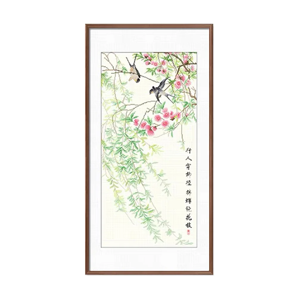 Ласточки Летающий в запасами ивовых деревьев листья штамп Набор для вышивания крестиком, 19,7 "x 35,5"