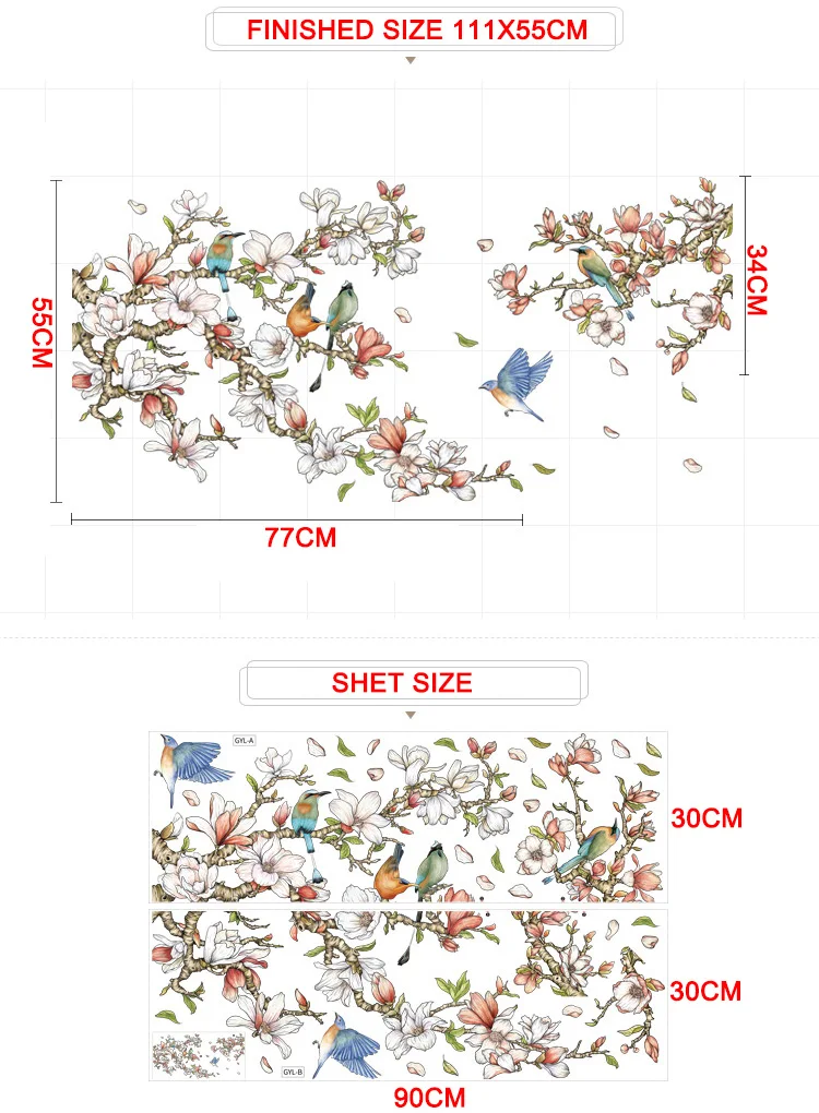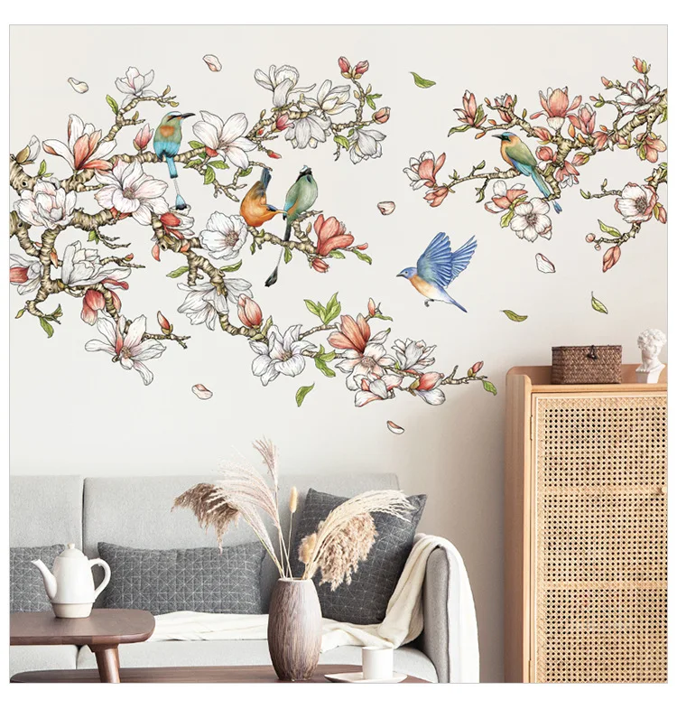 Большой фон для Спальни Декоративные наклейки для гостиной ТВ фон цветок магнолии птица обои
