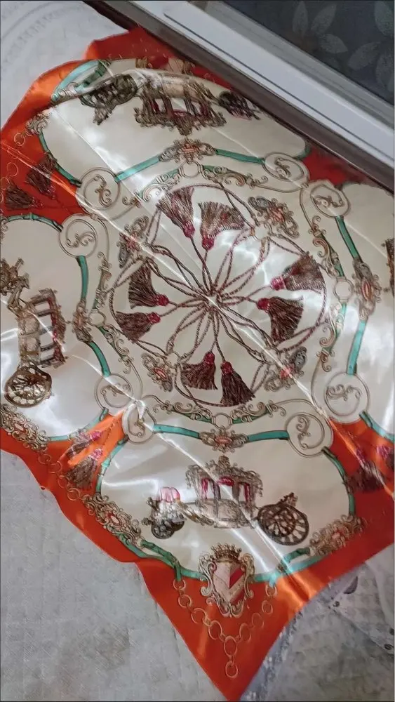 Качество идеальное! Швы профессиональные, не как пять лет назад. Доставка очень быстрая. Продавец - молодец. Всем рекомендую. Турки такие платки продают с "накруткой". Спасибо.