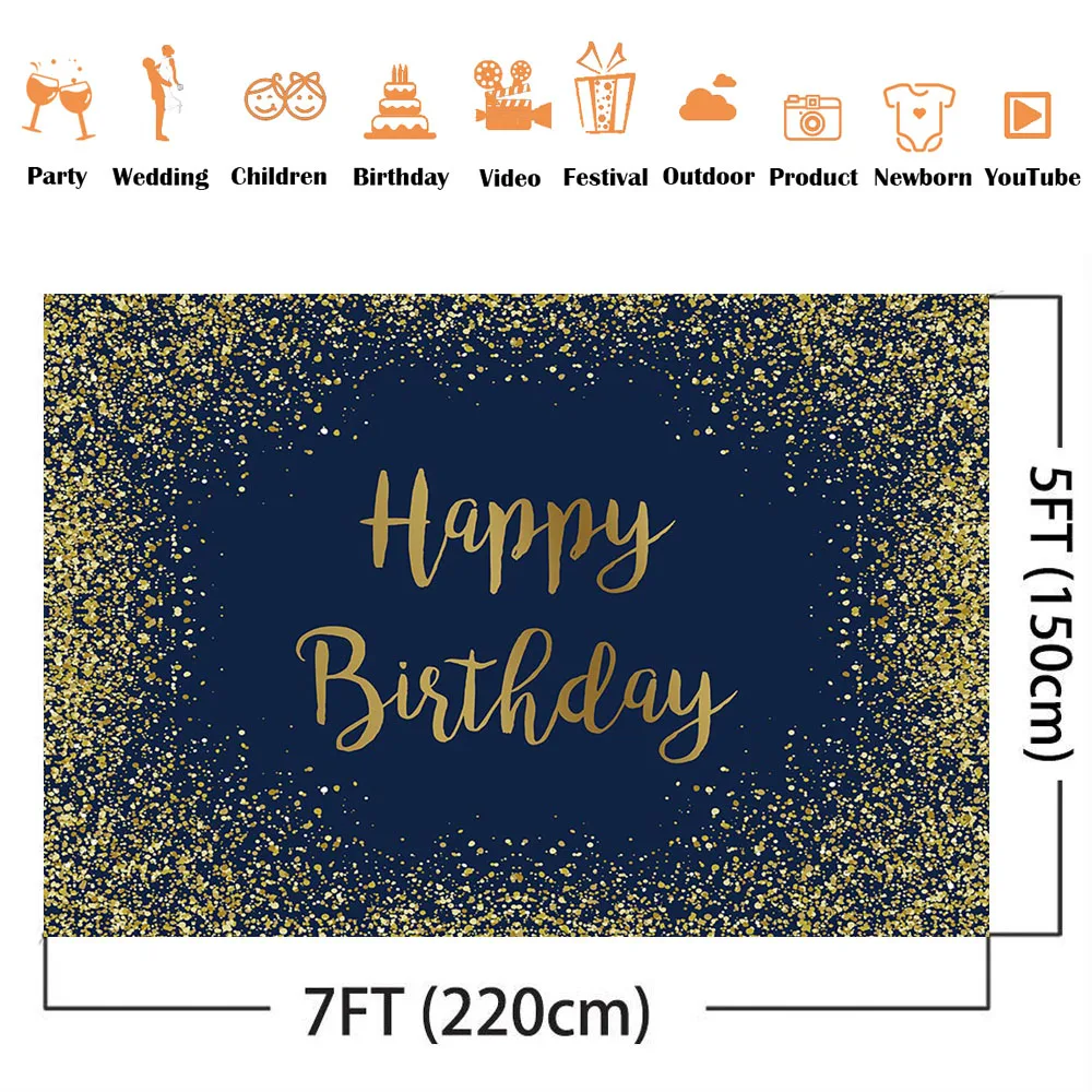 Темно-синий фон для дня рождения с золотым блеском украшение для вечевечерние НКИ на день рождения для взрослых 16th 18th 21th 30th 40th 50th 60th украшение
