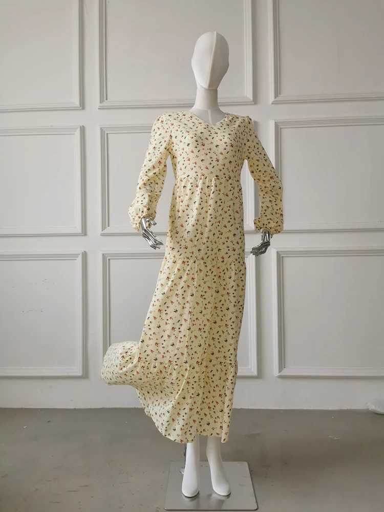 Женское шифоновое платье с V-образным вырезом, длинным рукавом