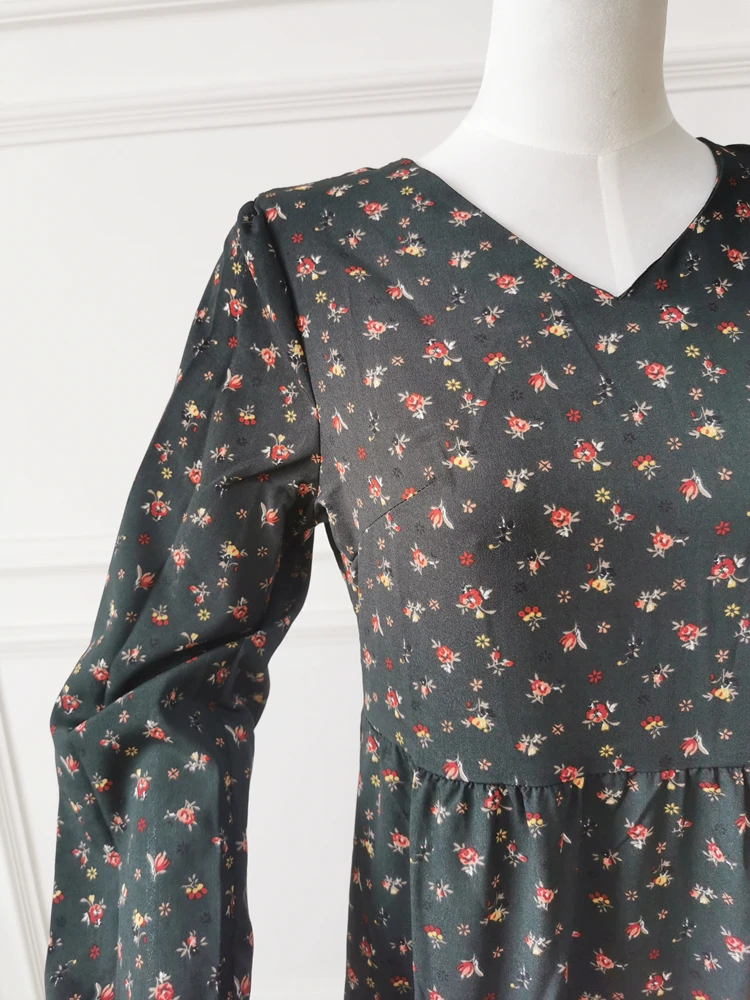 Очень синтетический материал, смесь хлопка (35%) и полиэстер... Не приятно с пластиковой стороной, но форма хорошая. Маленький размер, очень длинное платье, я 1 м70, и оно достигает земли