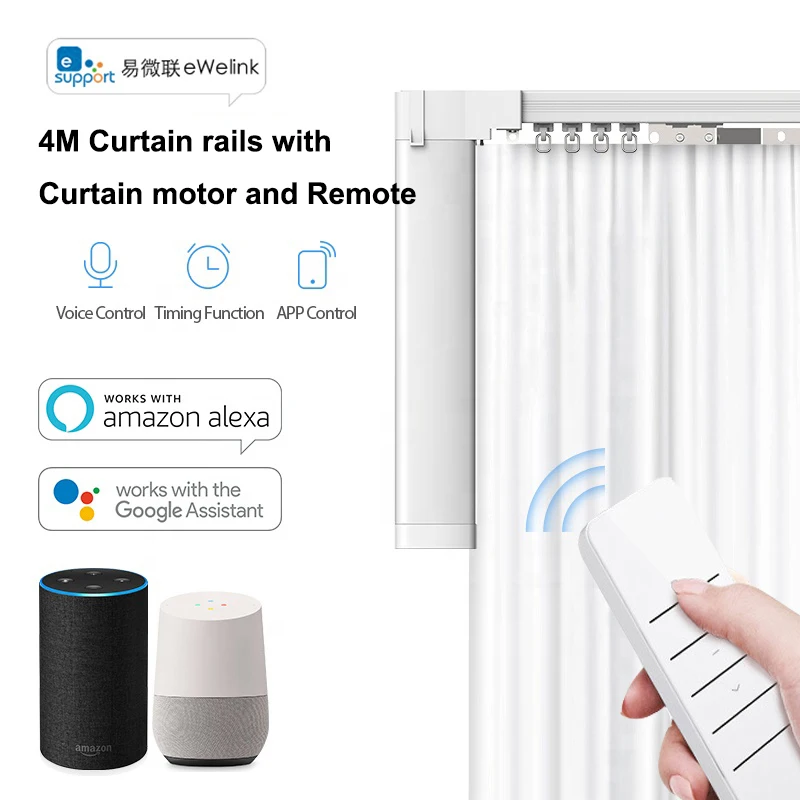 Электрический двигатель для штор Ewelink APP и моторизованный карниз 4 м, умный дом для штор, работает с Alexa Echo Google Home Control