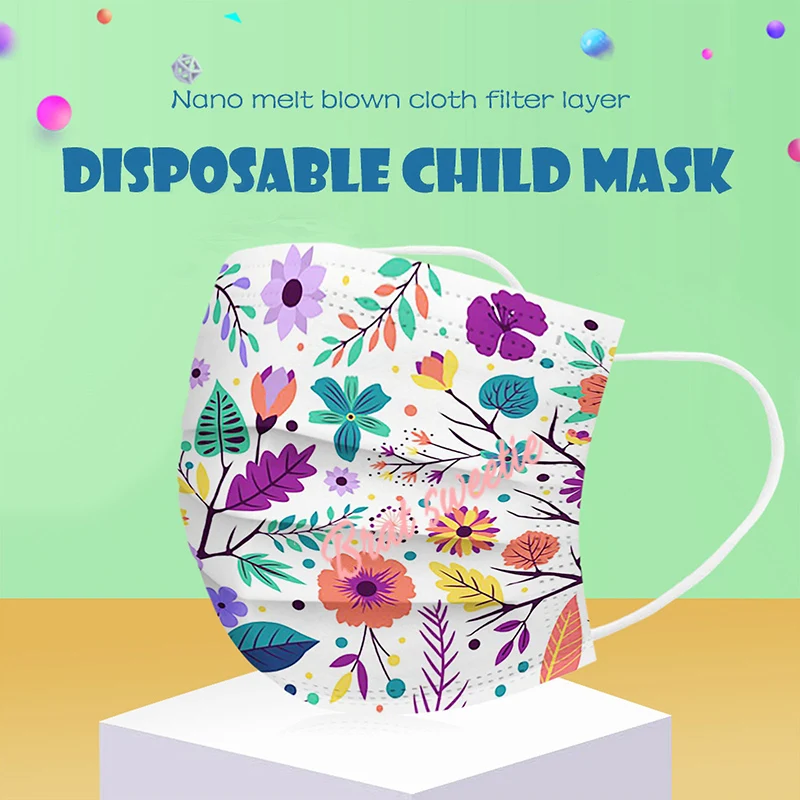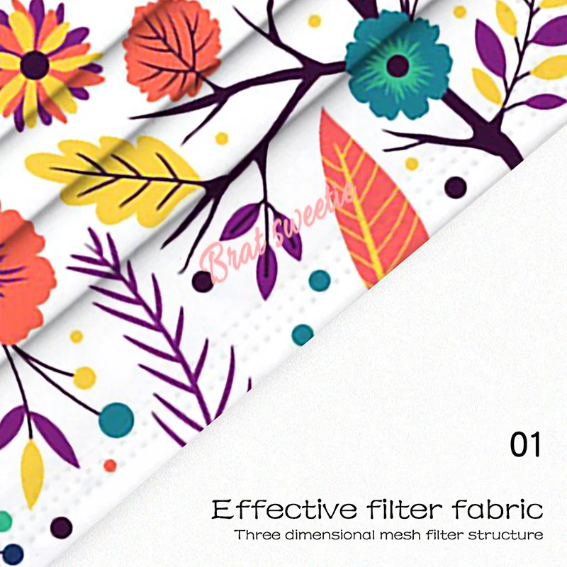 50 шт., одноразовые противовирусные маски для лица с цветочным принтом