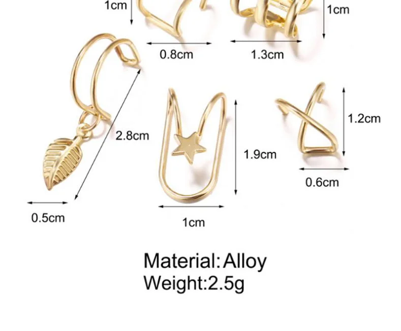 5 шт.компл. 2020 модные золотые для ушей манжеты лист клип серьги д...