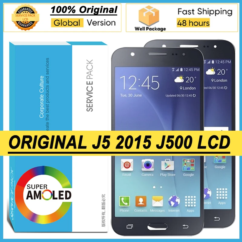 100% Оригинальный Amoled 5,0 ''дисплей для Samsung Galaxy J5 2015 J500 J500F Полный ЖК сенсорный экран дигитайзер в сборе запасные части