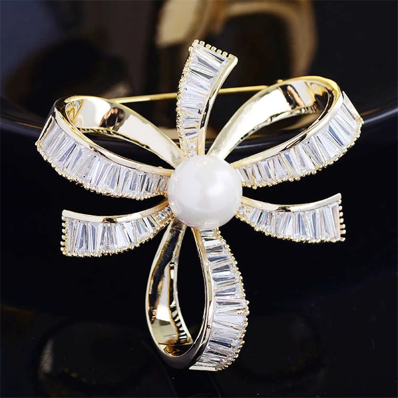 2021 Женская Брошь с бантом, элегантный жемчуг, циркон, брошь с кисточкой булавка, милый бант, Заколки ювелирные аксессуары broches para ropa mujer