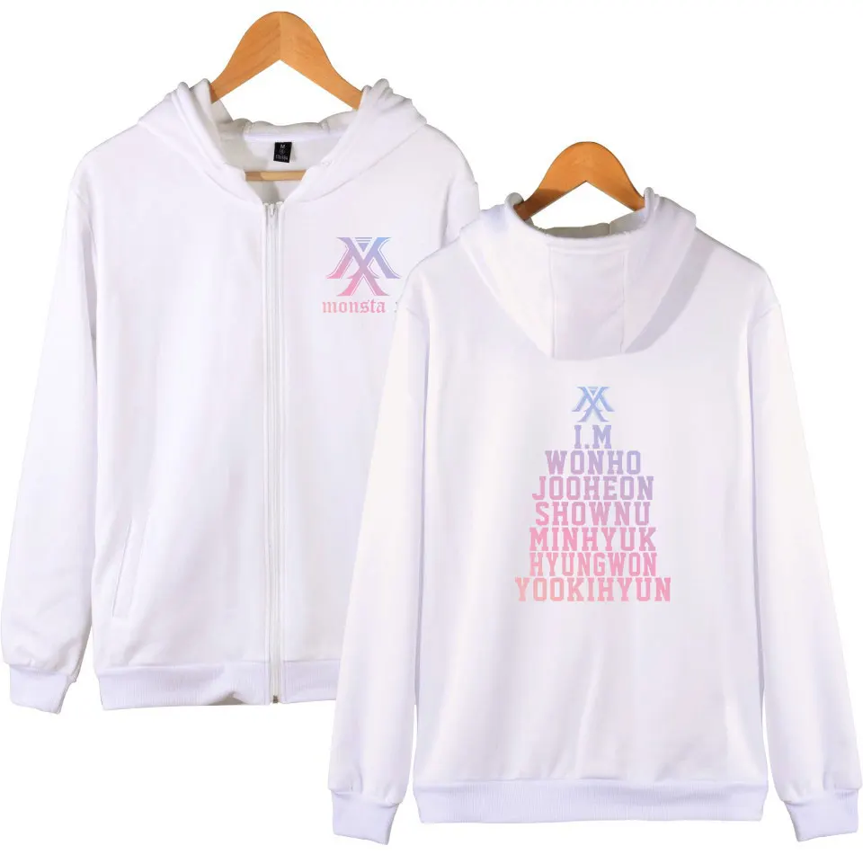 Новые мужскиемужские толстовки на молнии в стиле хип-хоп с капюшоном KPOP Monsta X, повседневный спортивный костюм с принтом, уличная одежда в стиле Харадзюку, свитшоты