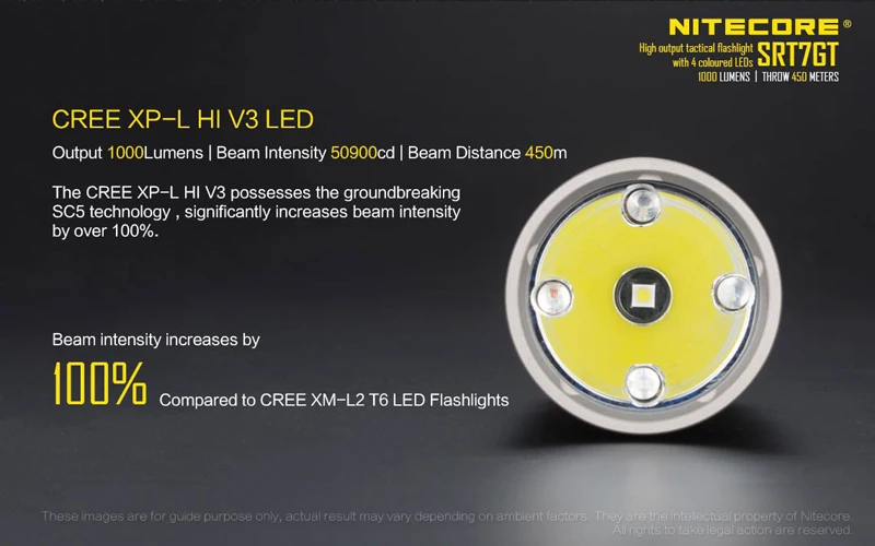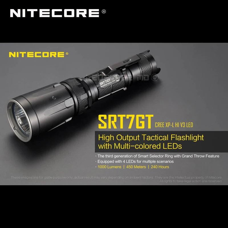 Сменные светильник NITECORE SRT7GT CREE XP-L HI V3 светодиодный высокое Выход светодиодный тактический вспышки светильник для студийной съемки с изображением разноцветных светодиодный s