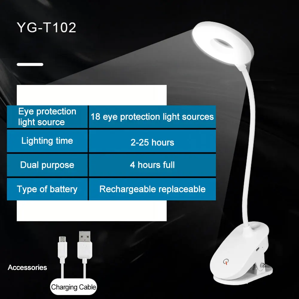 Беспроводная Настольная лампа с зажимом, перезаряжаемый ночник для ...