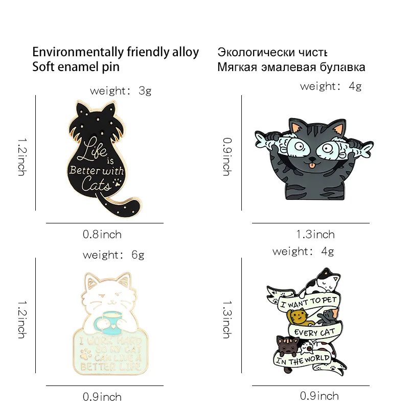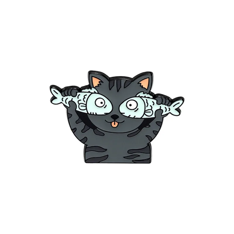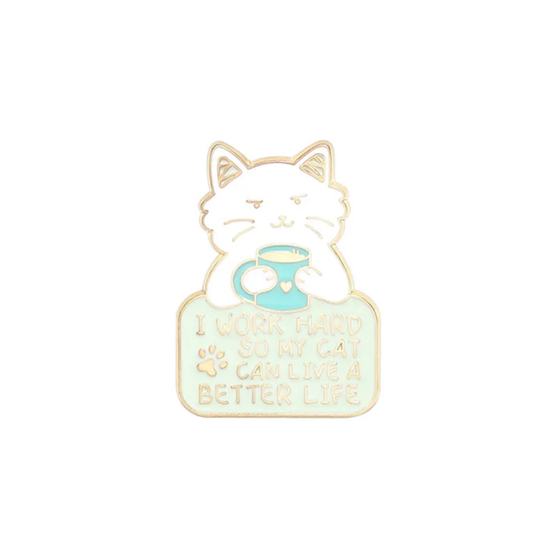 Брошь с эмалью в виде кошки и рыбы, значок с надписью I WORK HARD