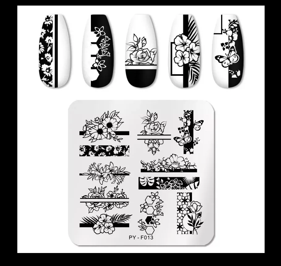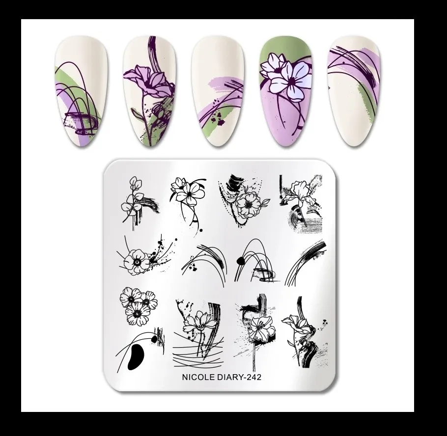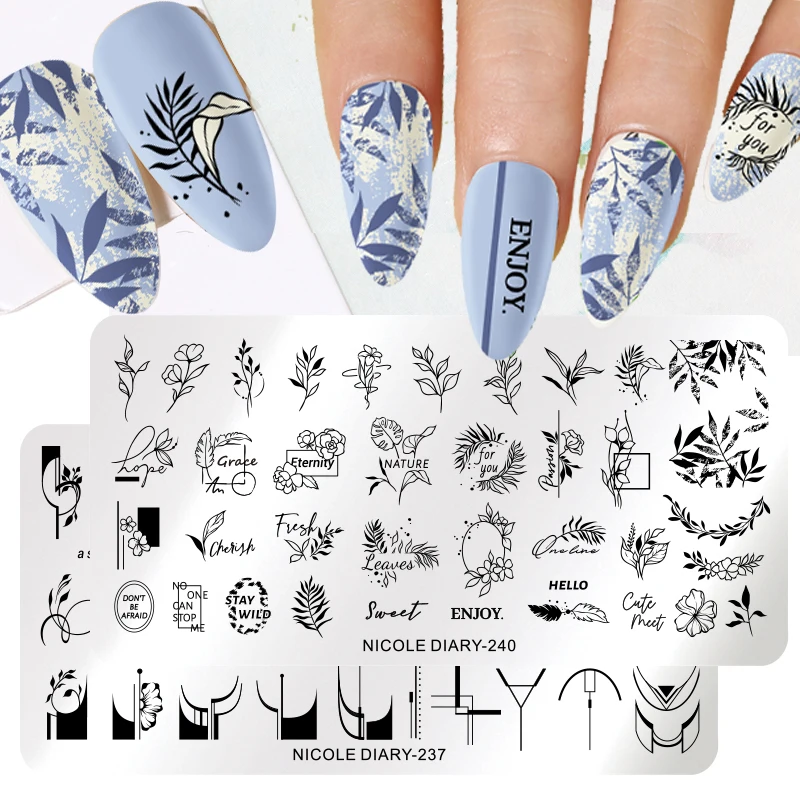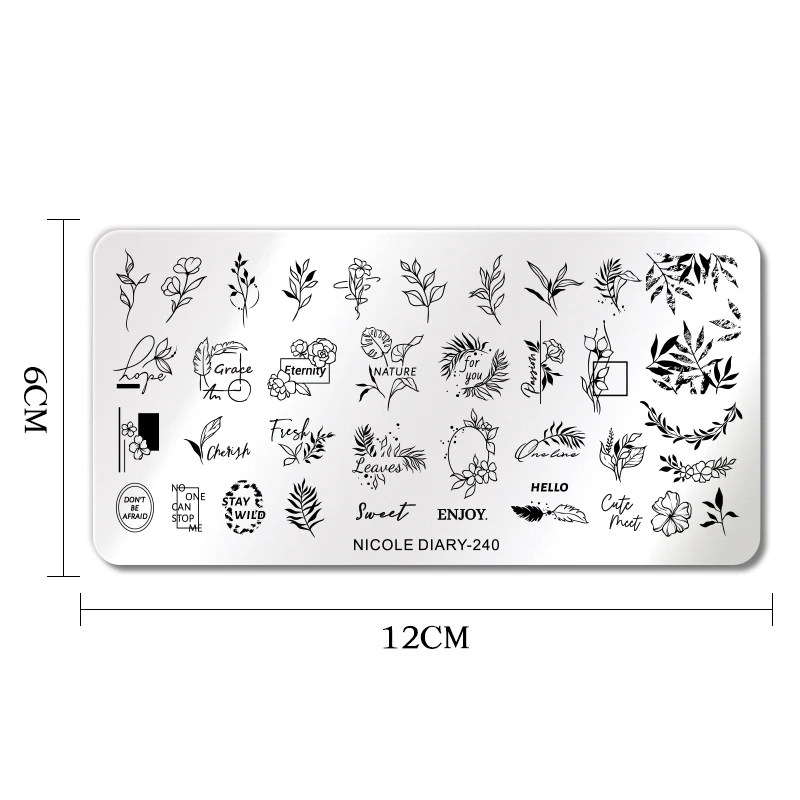 Трафареты NICOLE DIARY для стемпинга ногтей, прямоугольные пластины из нержавеющей стали с изображением персонажей растений, трафареты для дизайна ногтей, печатный инструмент