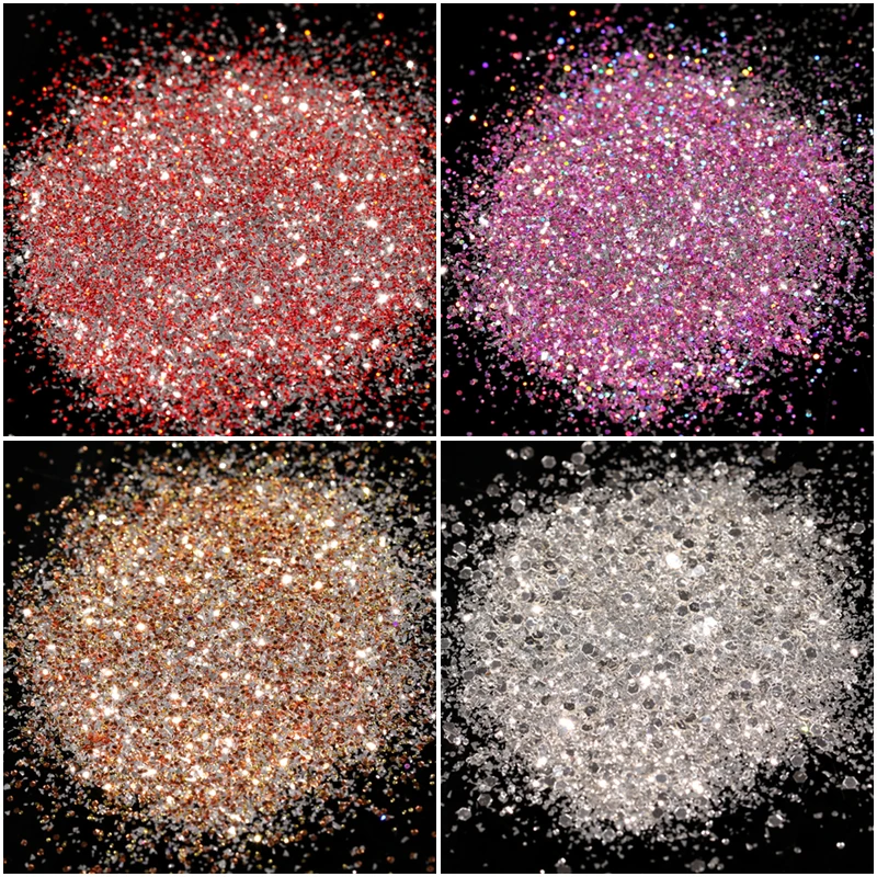 Блеск для ногтей, 1 коробка, Платиновые блестки, разноцветные блест...