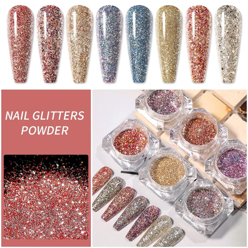 Блестки для ногтей, Радужный порошок для ногтей, блестящие нестанда...