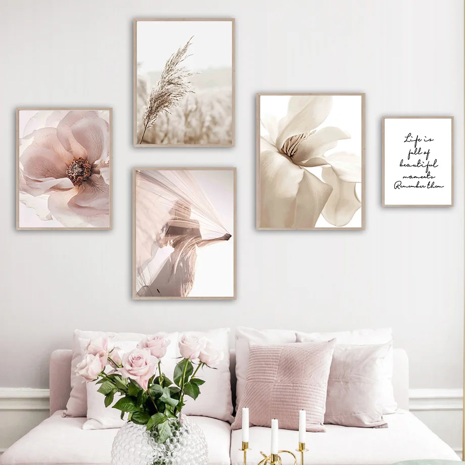 Настенная Картина на холсте с изображением цветов магнолии, грибов, тростника, пляжной девушки, скандинавские постеры и принты, настенные картины для декора гостиной