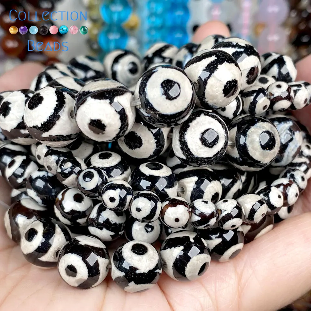 Натуральный камень тибетский дзи Агаты бусины Свободные Прокладки круглые для изготовления ювелирных изделий 6-12 мм DIY браслет аксессуары оптом