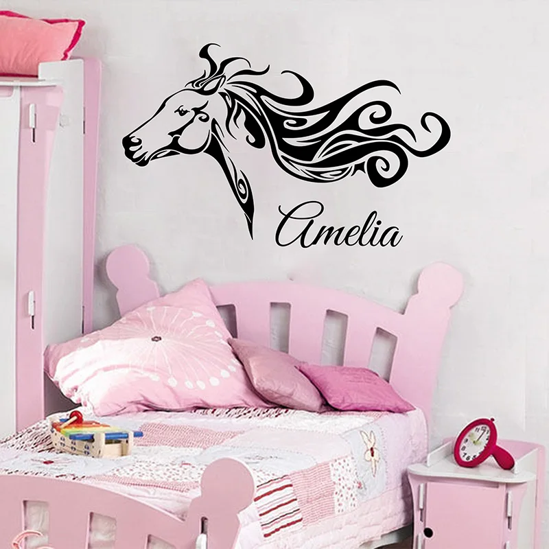 ThemeCustom Name Boho Horse Head Wall Sticker Baby Nursery