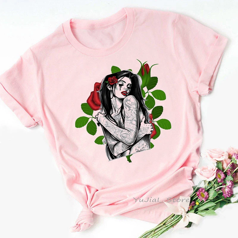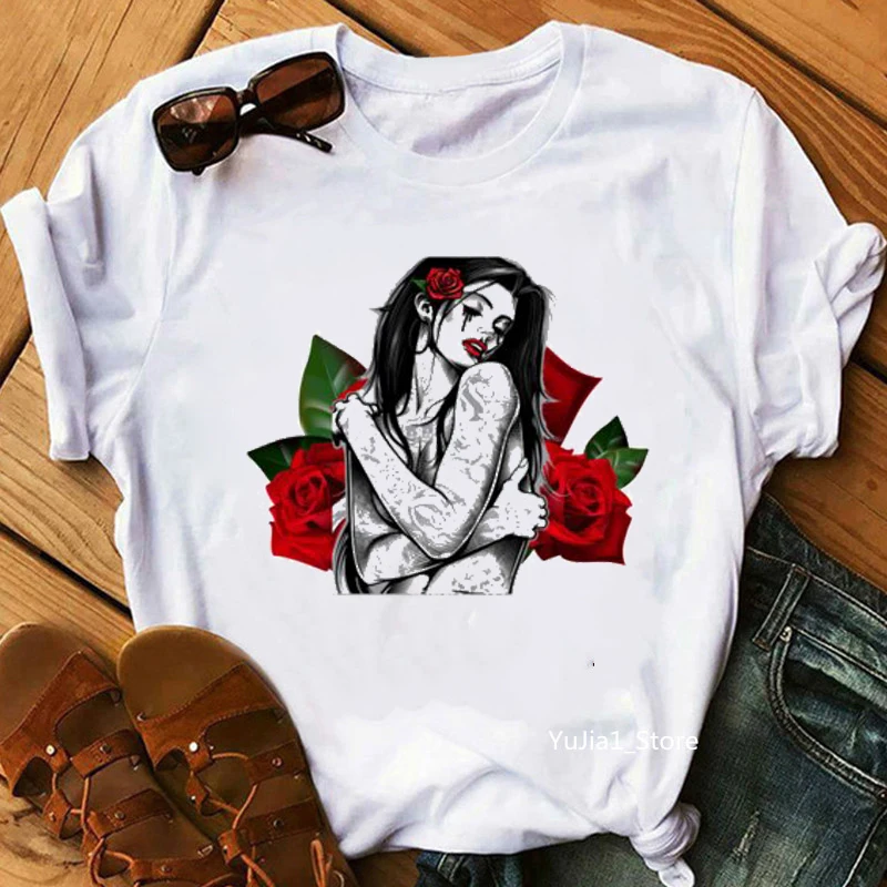 Футболка женская с принтом красных роз, с изображением цветов, 2021