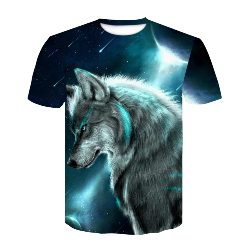 Новые летние 3D принтом дикого волка, футболка с изображением живот...