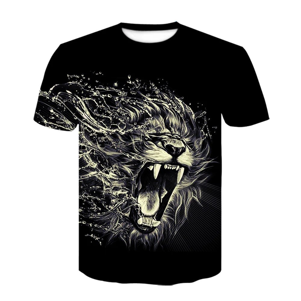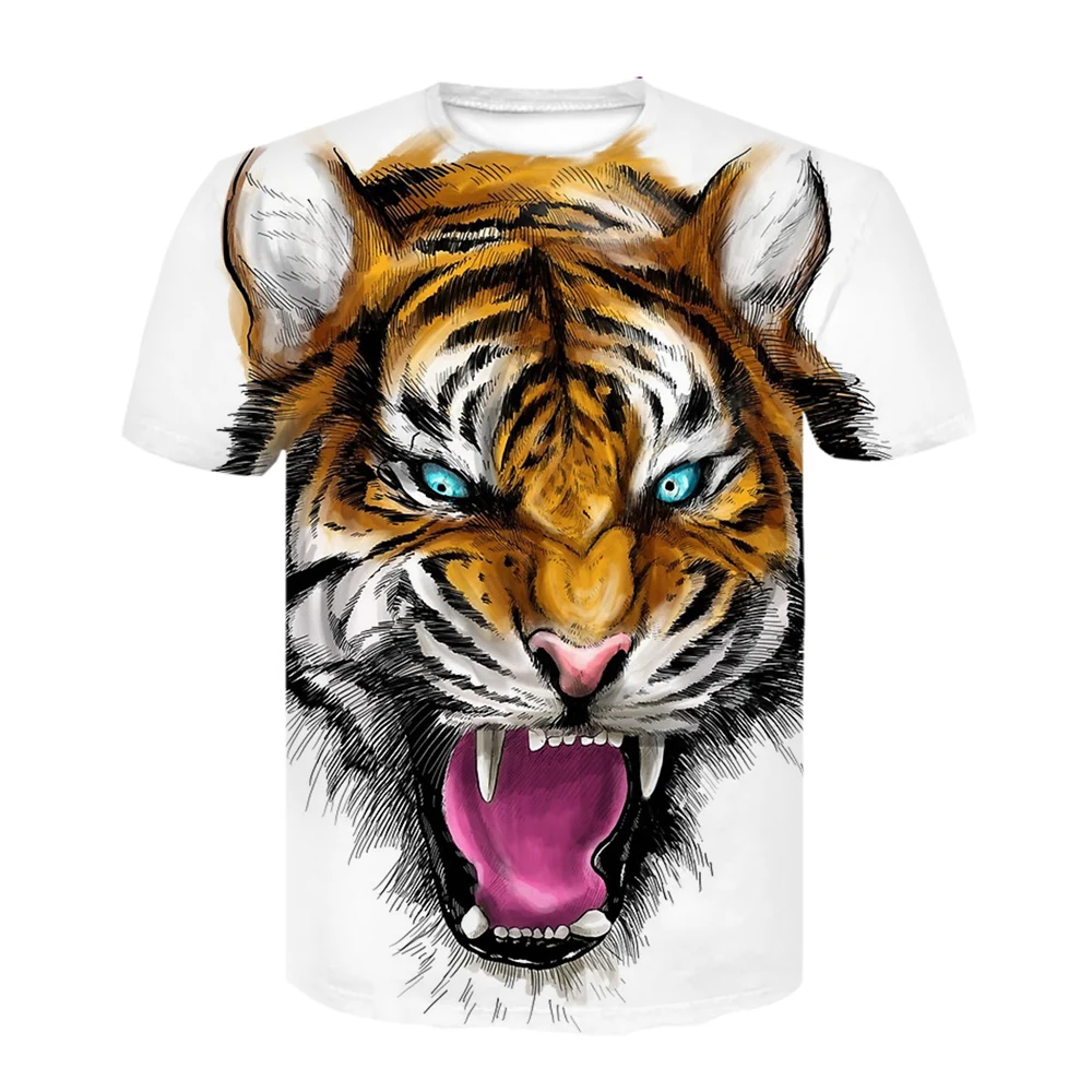 Футболка с 3D-принтом животных, тигра, Льва, лица, Повседневная летняя футболка, модная футболка с круглым вырезом, Харадзюку, негабаритная футболка, топы