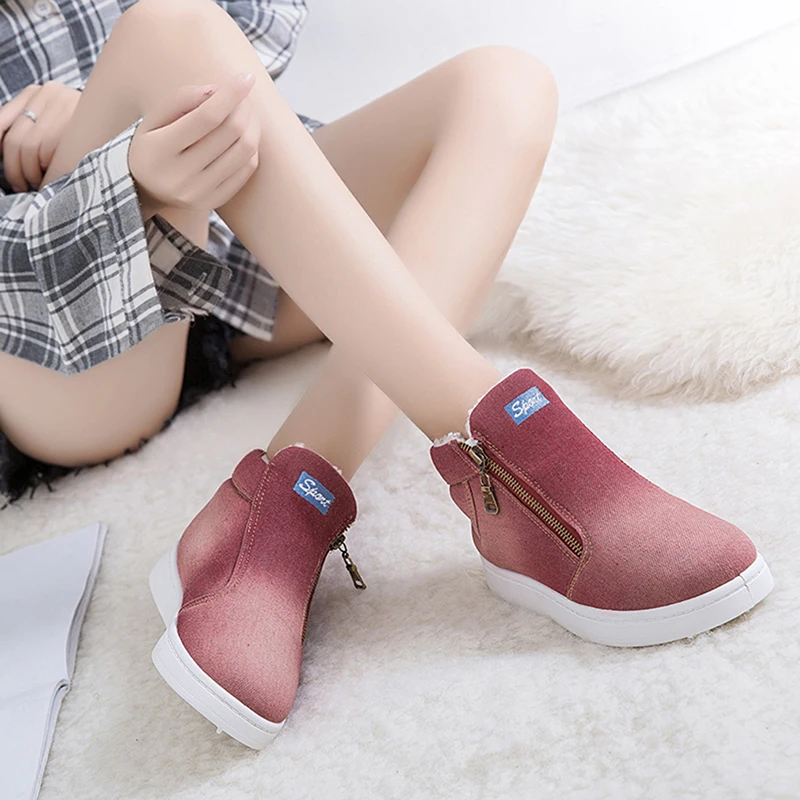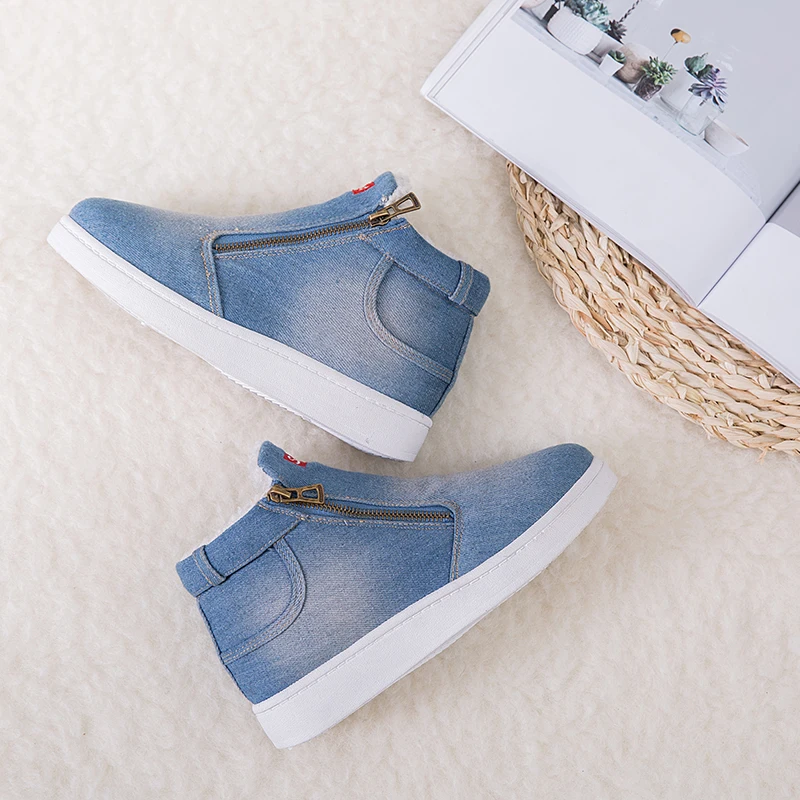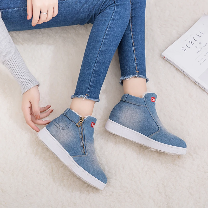 Зимняя обувь; Женские зимние ботинки из джинсовой ткани; Теплая Фли...