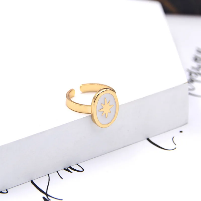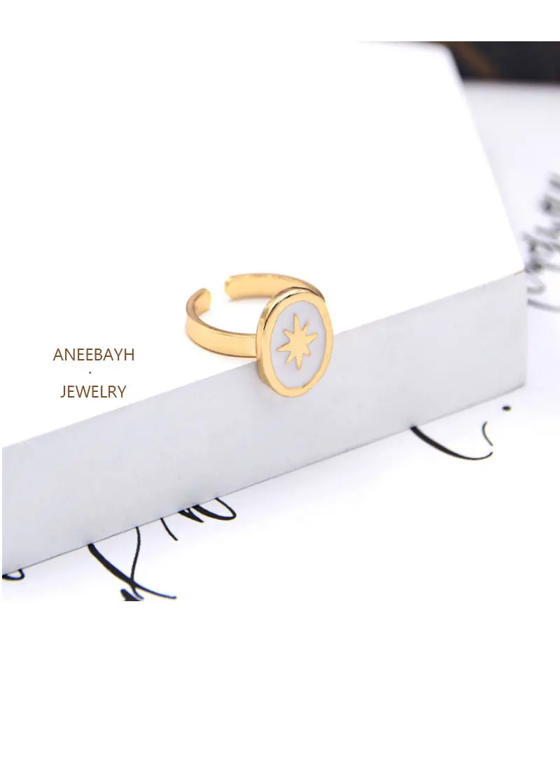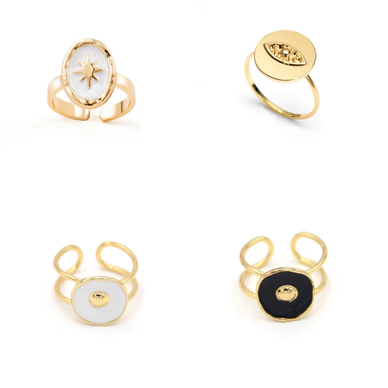 Женские золотые перстни в богемном стиле, геометрические открытые винтажные кольца неправильной геометрической формы с круглым эмалью в форме сердца, овальной формы и звезды, ювелирные изделия